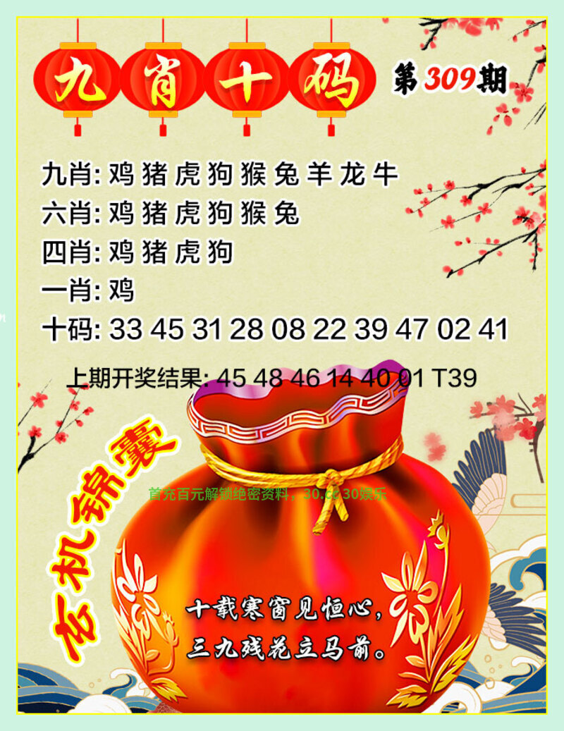 | 309期:✨ 【羊23.蛇25.鸡45.龙26.猴10】 |