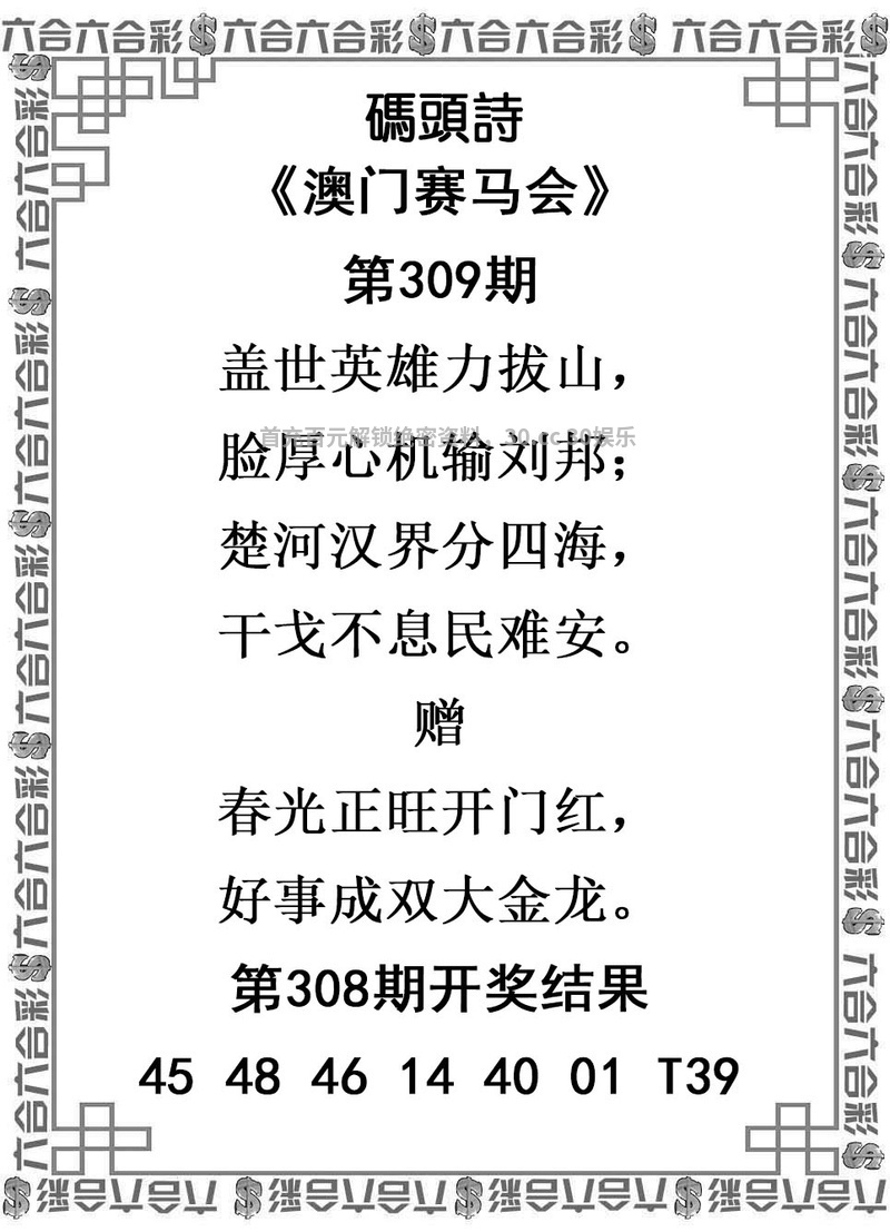 | 308期:🎀绝杀八码🎀开:兔39准 【05.09.17.21.22.29.33.46】 |